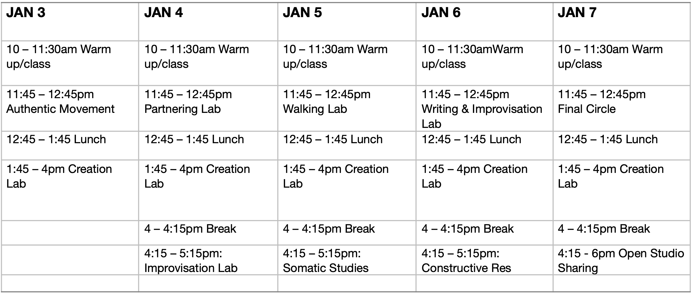 Join us for our 6th Creation Lab in downtown Portland! Each Lab brings a different energy and a unique cohort of movers and artists together. Through daily class, improvisation labs, repertoire, and movement prompts we spend the week engaging in different components of the little house creative process and arrive somewhere new. Over the course of the week we build a movement score together and offer an open studio sharing on the final day that is open to the public.